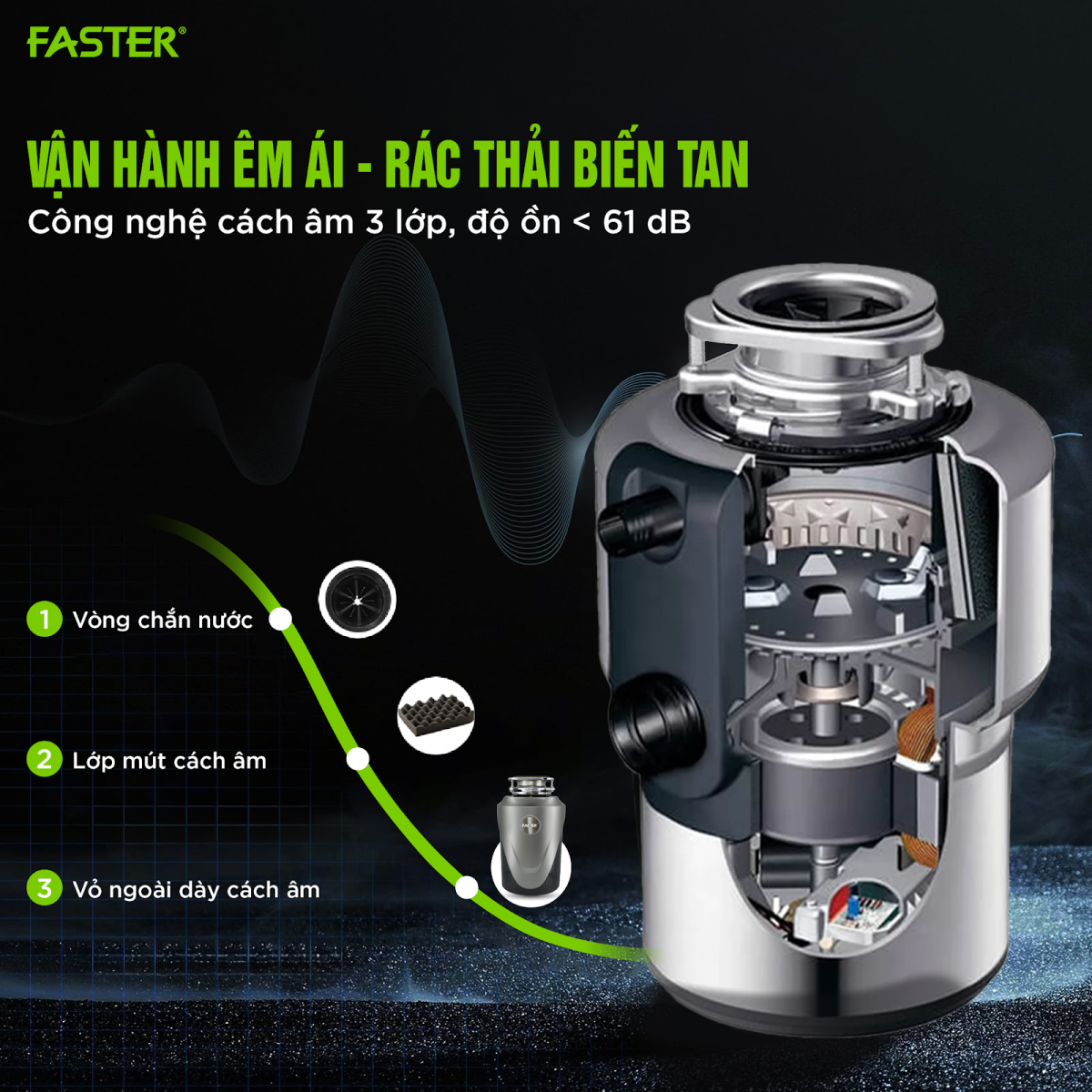 Nỗi lo máy hủy rác gây tiếng ồn lớn chủ yếu đến từ các dòng máy đời cũ hoặc lắp đặt không đúng kỹ thuật. Với các sản phẩm hiện đại – đặc biệt là các mẫu máy hủy rác từ Faster – vấn đề tiếng ồn đã được xử lý hiệu quả ngay từ thiết kế.